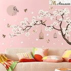 Amaonm Chinese Style White Flowers Black Tree and Flying Birds Wall Stickers Rem