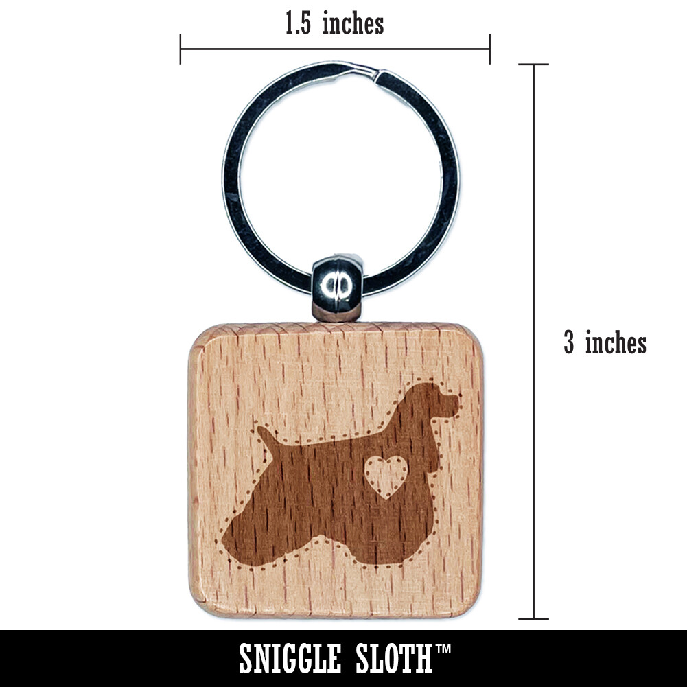 American Cocker Spaniel Dog with Heart Engraved Wood Square Keychain Tag Charm