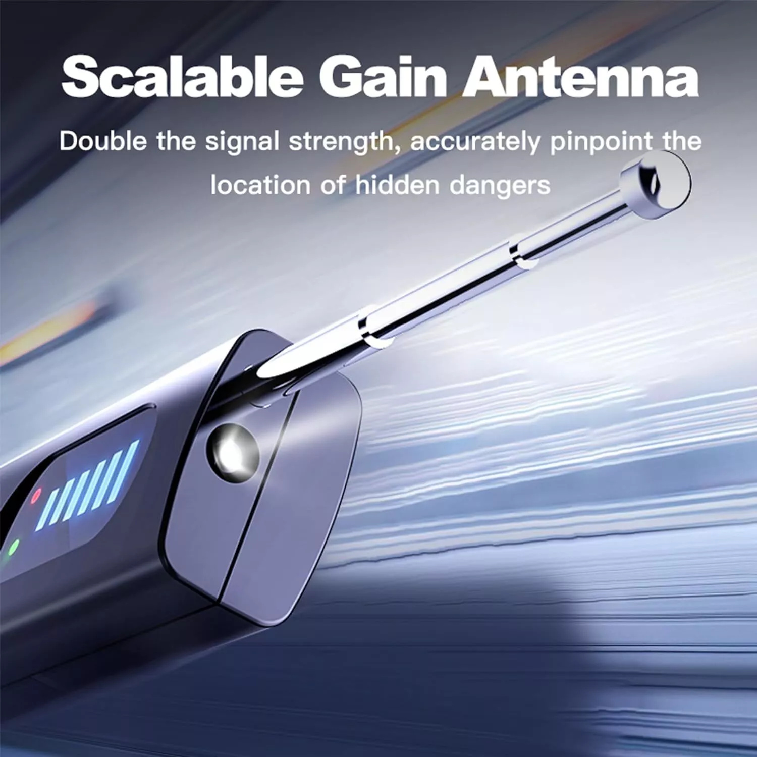 1.LED lighting for a variety of situations: 2. Small and light travel is easy to carry: 3. Adjustable sensitivity wide detection range: 4. Strong infrared detection refuses privacy disclosure: 5.AI intelligent chip strong anti-interference more accurate: 6. Ultra-remote detection telescopic gain antenna: