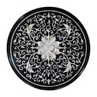 Antique Design Inlay Work Coffee Table Top Round Black Marble Balcony Side Table