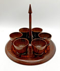 Stunning Antique Rose Wood Egg Serving Set with Six Egg Cups and Stand - VGC