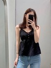 Aplaze Eyelet V-Neck Flounced Cami Top Black 72322