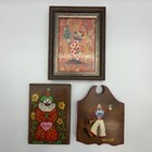 VTG Clown Wall Art Lot Print + Hand Painted Wood Plaques Folk Art Circus Decor