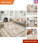 Area Rug 9x12 Washable Vintage - Soft Traditional Rugs for Living Room Large Non Slip Backing with Low Pile Farmhouse Oriental Retro Carpet for Bedroom Dining Room or Home Office - Light Brown