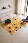 Marimekko Unikko Design Hand Tufted Rug-Modern Gold Mustard Floral Wool Area rug