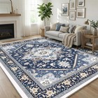Area Rugs Washable 6 x 9 Rectangular Non Slip Faux Cashmere Navy Blue & Gold