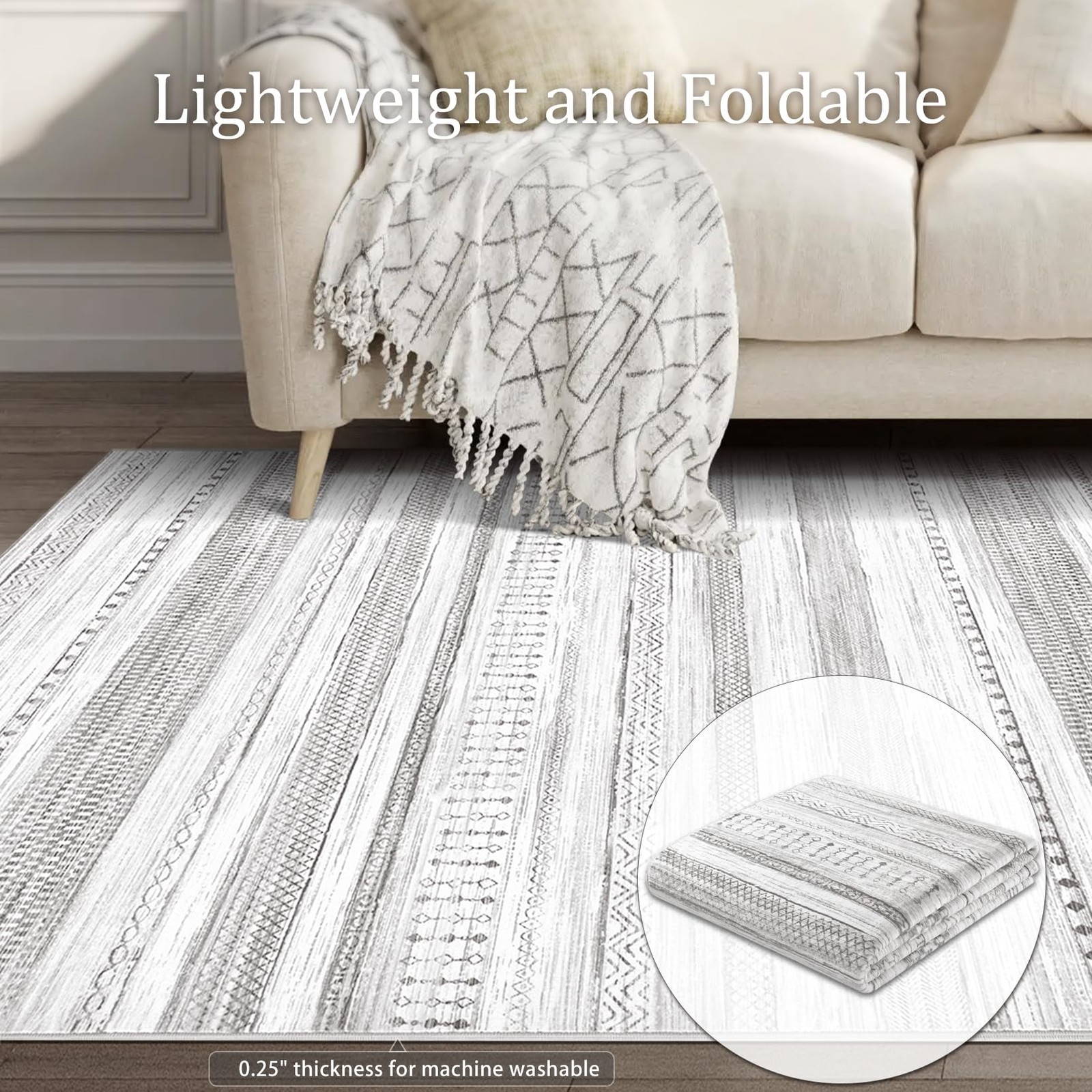 Area Rugs for Living Room: 5x7 Washable Boho Rug for Bedroom Large Neutral Bo...