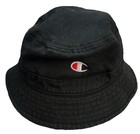 Champion Logo Bucket Hat Cap OSFA Black Embroidered Cotton