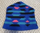 Vintage 80s Smiley Wool Beanie Winter Knit Hat Cap Toque Geometric Made USA