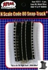 ATLAS #2511 1/2- 9 3/4" RADIUS CURVED TRACK (6 Pack) - N Gauge NOS