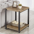 Industrial End Table Square Side Table Storage Shelf Wood Metal Nightstand Oak