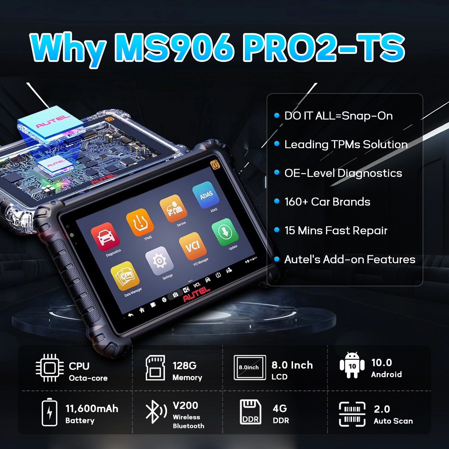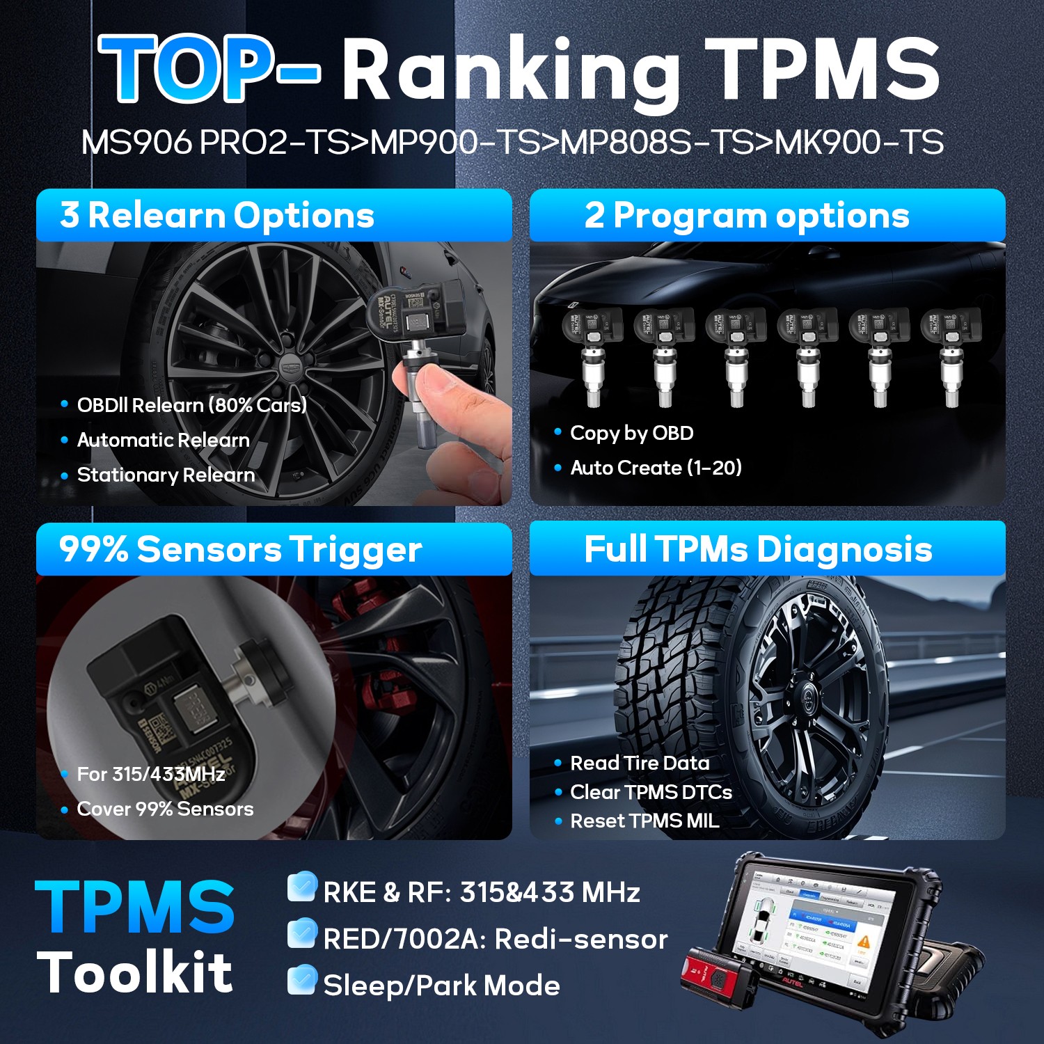 Autel MaxiSys MK906S PRO2-TS Car Diagnotic Scanner TPMS Programming BLE Sensors