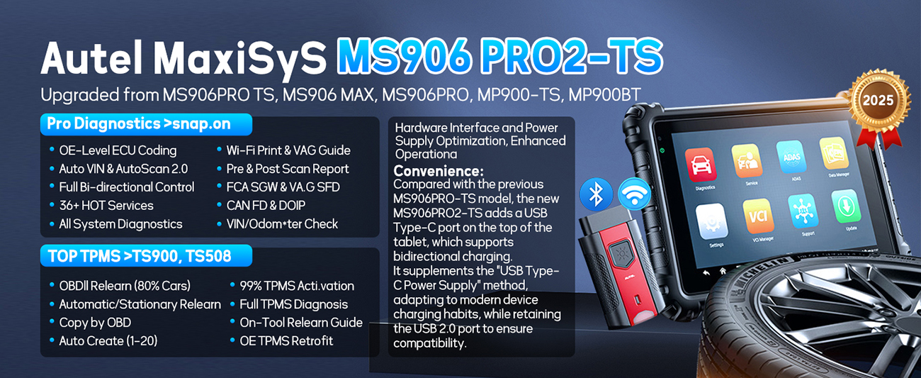 2025 Autel MaxiSys MK906S PRO2-TS Diagnotic Scanner TPMS Programming BLE Sensors