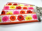 Gerber Daisy Flower Ribbon on Strong Webbing Key Fob Keychain Wristlet -USA Ship