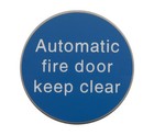 Adhesive Automatic Fire Door Keep Clear Sign 75mm Diameter Satin Stainless Steel