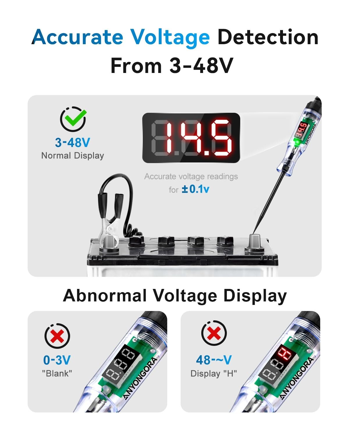Automotive Test Light with 3-48V LED Digital Display, Automotive Circuit Tester