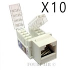 10 Pack Lot - CAT5e Keystone RJ45 Ethernet Toolless Tool-Less Snap-In Jack White
