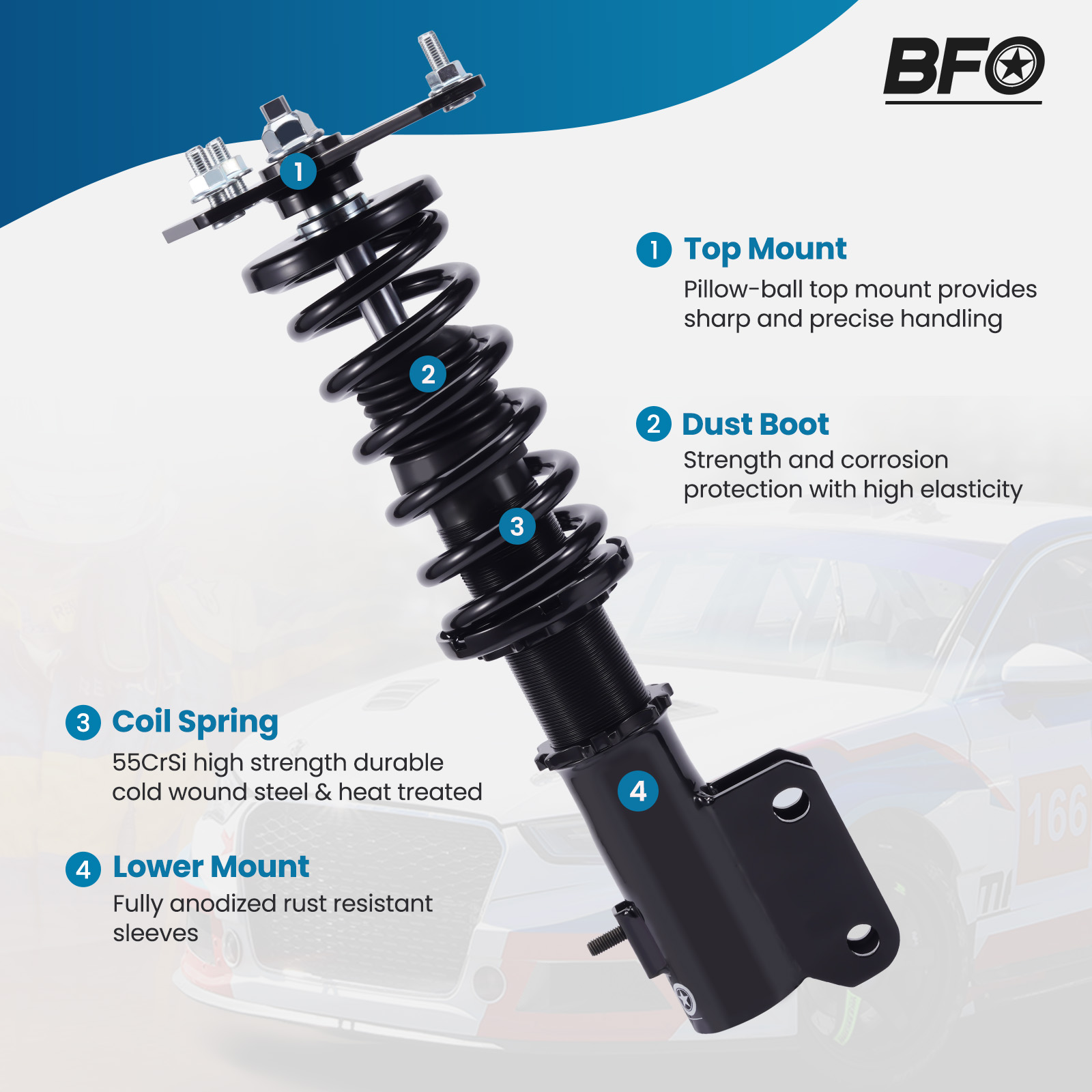 BFO Adjustable Coilover Strut Kit For Mitsubishi Lancer 2002-2006
