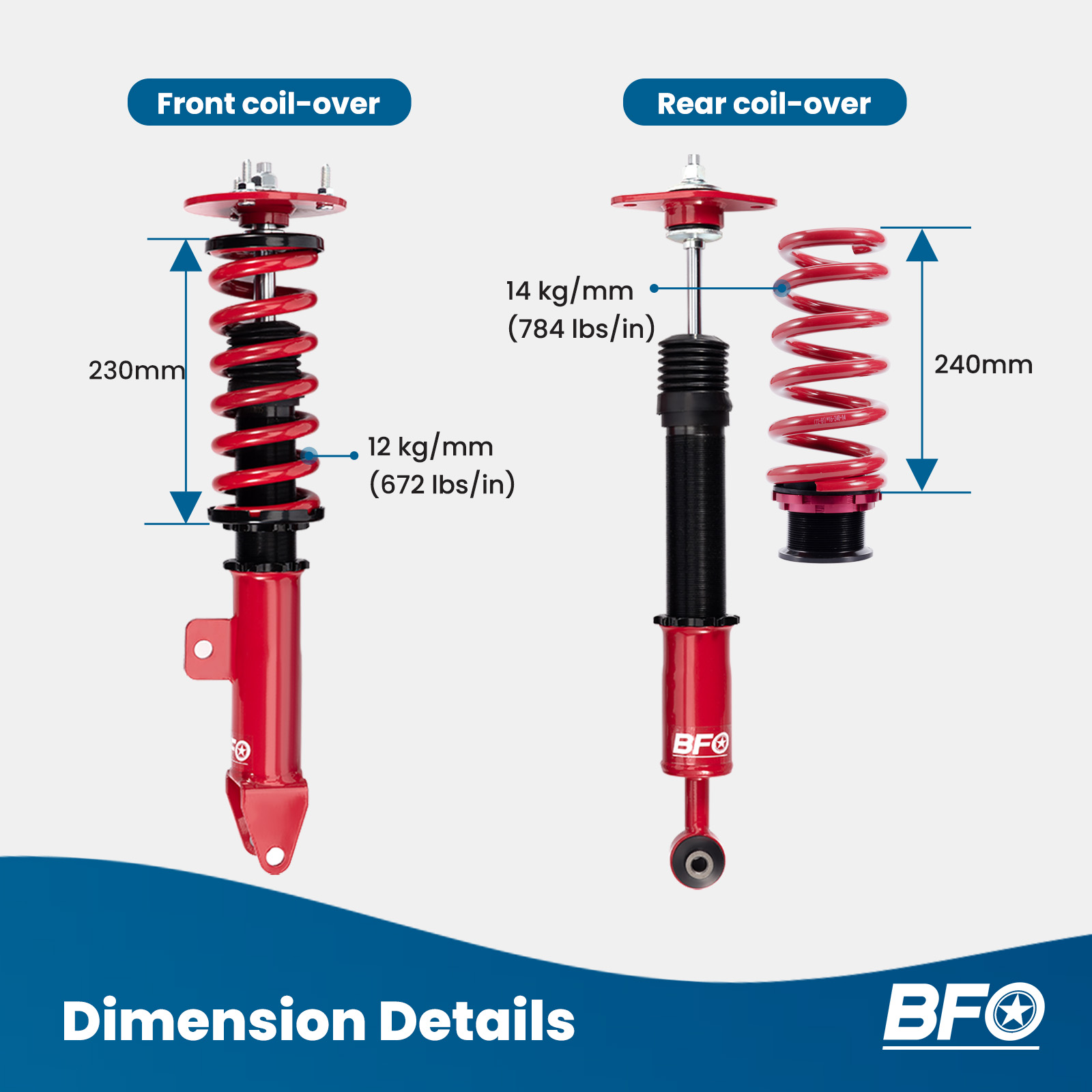 - Spring length Front: 230mm