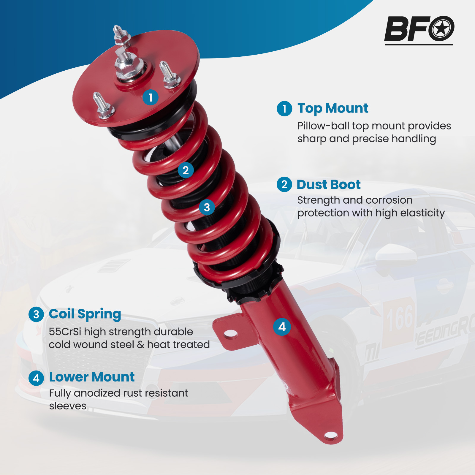 1. Self-design structure and new manufacturing system to give more customers good coil-overs without breaking the bank.