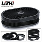 Black Air Cleaner 12'' Washable Element for 5-1/8" Single Carb 4 Barrel oval