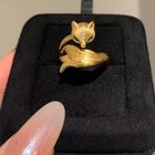 Gold Plated Fox Adjustable Ring Vintage Womens Open Band Jewelry &^