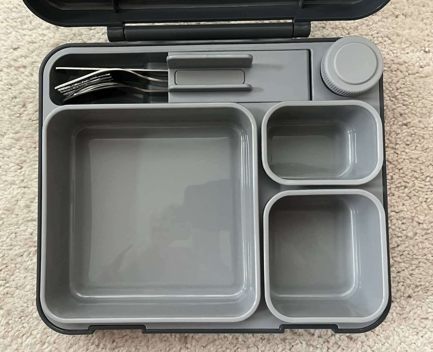 Built Lunch Box 3 Compartments. New Dishwasher microwave Safe Light Gray Bento