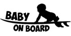 Surfing Baby On Board White Vinyl Decal Sticker
