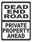 Dead End Road Private Property Ahead Sign. Size Options