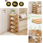 Bamboo Shoe Rack - Vertical Shoe Rack for Small Spaces, Tall Narrow Shoe Rack Or