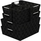 NEATERIZE BLACK Container Woven Storage Baskets Organizing Set Of 9 Fabric BLACK