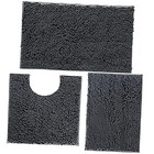 Bathroom Rugs Set Non Slip 3 Piece Bath Mat Washable Chenille Charcoal Grey