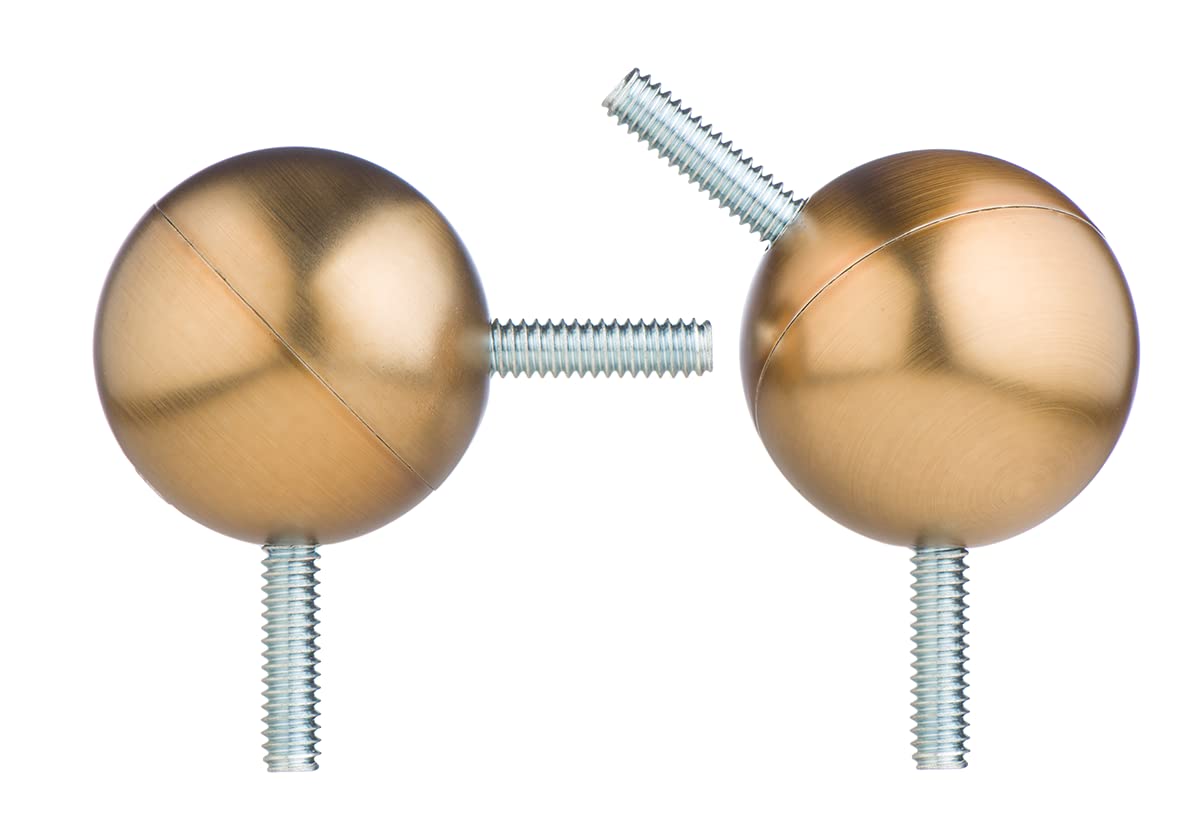 Simple ball design of 1.5 inch diameter fits rods from 0.5 up to 1.125 inch (1/2" - 5/8" - 3/4" - 7/8" - 1" - 1-1/8"). Compatible with all rods with threaded end of 1/4". Minimalist design to match your bay window drapery rods and can be adjusted from 90 to 180 degrees. Available in most finishes, satin nickel, satin black, gloss white, chrome, brushed nickel, antique brass, matte ivory, warm gold (brass look), oil rubbed bronze, pewter, matte antique black.