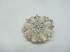 Beautiful Cocktail Ring Silver Tone Stretch Clear Rhinestones Faux Pearl NICE
