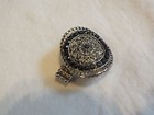 Collectible Stretch Cocktail Ring Silver Tone Black Rhinestones 1 1/4" Face CUTE