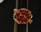 Gold-tone Pomegranate Ring With Red Garnet Seeds Vtg