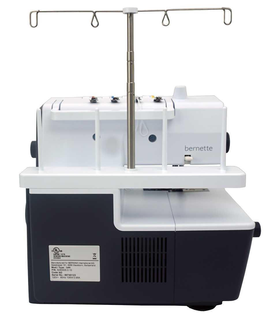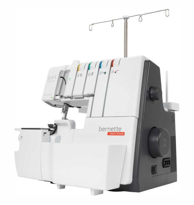 The color-coded, open thread path makes the bernette Funlock 44 easy to thread by following the colored markings. A separate needle threader and lower looper threading mechanism also assist with threading.
