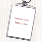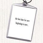 White Black Best Time For New Beginnings Quote Bag Tag Keychain Keyring