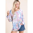 BiBi Tie Dye French Terry V-Neck Top with Puff Sleeves