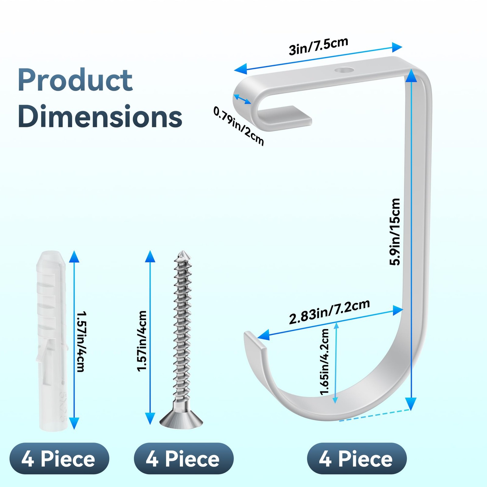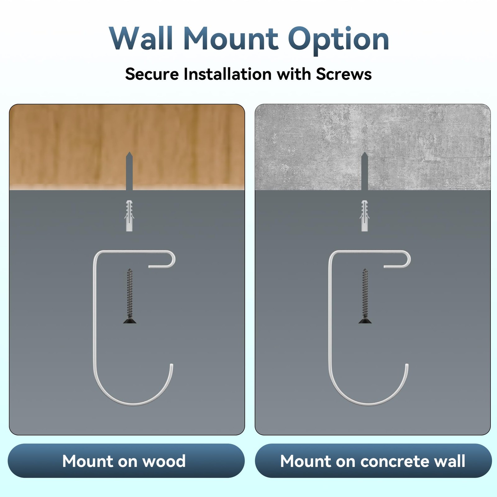 - Align hook and fasten with screws