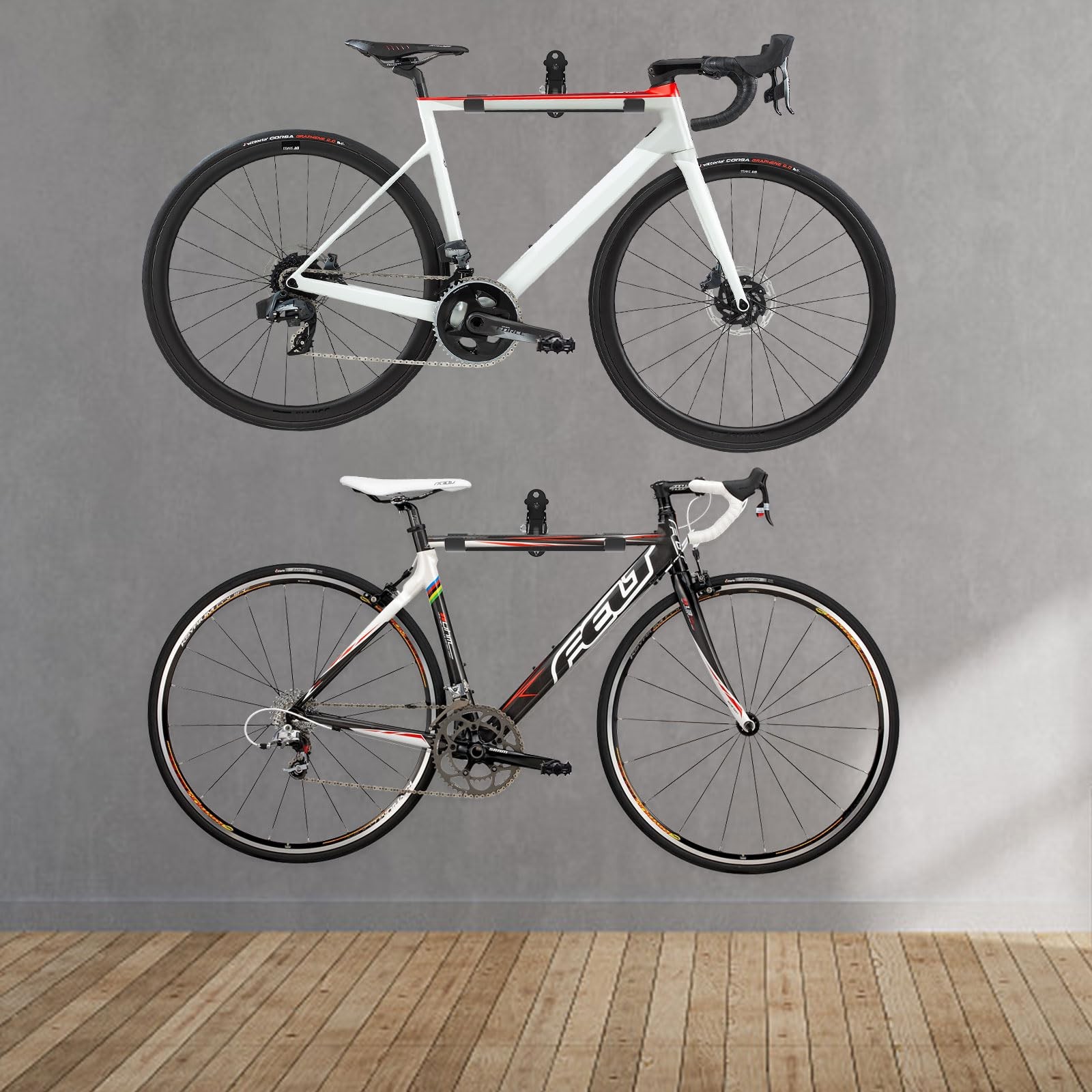 【Efficient Bike Storage Solution】: The bike rack garage allows bikes to hang neatly on the wall, not only making the space more tidy and clean, but also adding decorative effect, providing the perfect storage solution for your garage or apartment, ensuring your bikes are conveniently stored and fully protected.