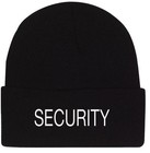 Black SECURITY Watch Cap Ski Hat - White Embroidered Winter Hat 100% Acrylic