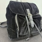 Y2K Black Velvet Backpack Drawstring Flap Metal Buckle Small Slouchy Goth Witchy