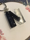 Resin - Custom - Letter Keychain A-Z - Glitter Black/White Or Black/Clear