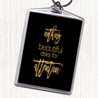 Black Gold Nothing Beautiful Quote Bag Tag Keychain Keyring