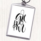 Black White Girl Power Text Quote Bag Tag Keychain Keyring