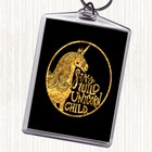 Black Gold Wild Unicorn Stay Quote Bag Tag Keychain Keyring