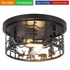 Black Semi Flush Mount Ceiling Light Fixture, Rustic Cabin Deer Ceiling Light Fi