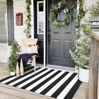 Black White Striped Rug -3x5 Front Door Mats Outdoor,Washable Rug for Front P...