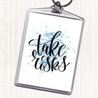 Blue White Take Risks Swirl Inspirational Quote Bag Tag Keychain Keyring